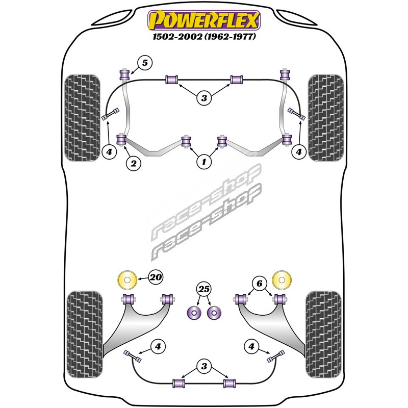 Powerflex Boccola esterna del braccio inferiore anteriore BMW 02 Series 1502-2002 (1962 - 1977)