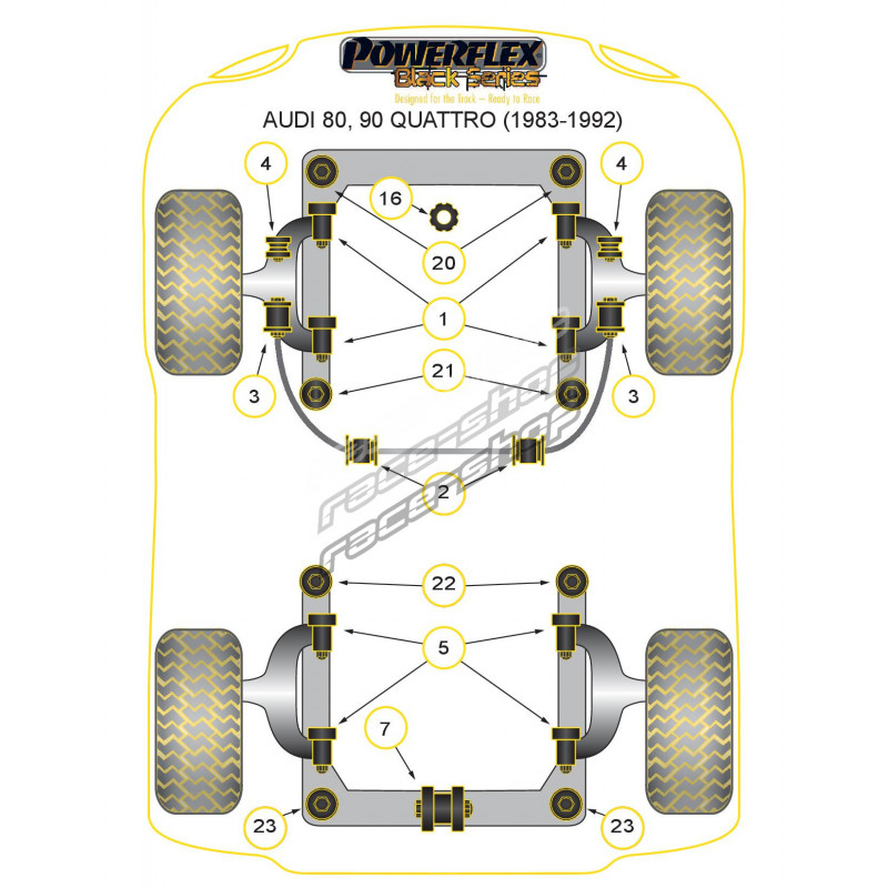 Powerflex Boccola anteriore del sottotelaio anteriore 10mm Audi 80, 90 Quattro inc Avant S2 Coupe B3
