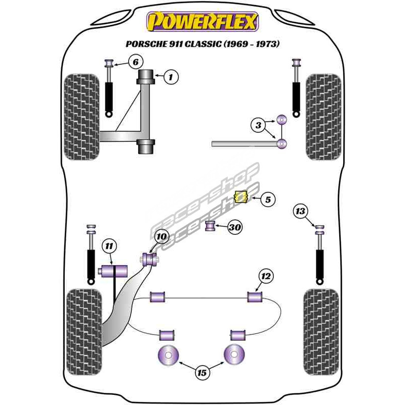 Powerflex Front Strut Top Mount Bush Porsche 911 Classic (1969 - 1973)