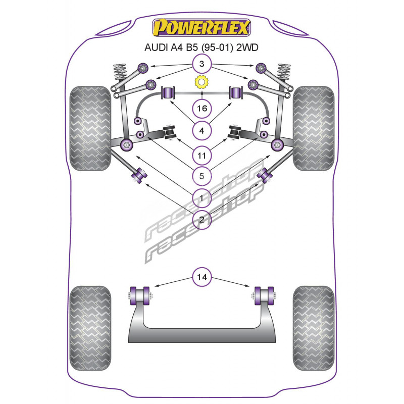 Powerflex Boccola ponte posteriore Audi A4 2WD (1995-2001)