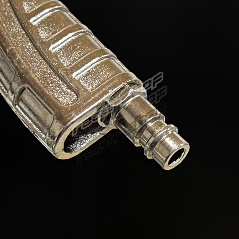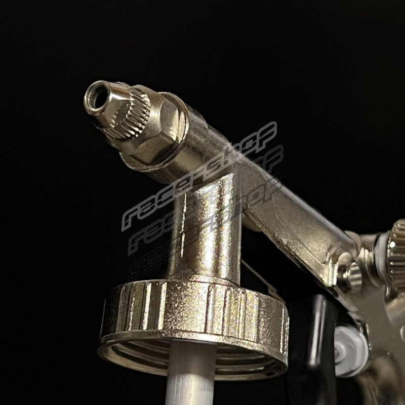 Prima dell'uso, ridurre la pressione al minimo utilizzando il regolatore rotativo e quindi inserire la cartuccia con il materiale. Collegare l'aria compressa con una pressione massima in ingresso di 8 bar e aumentare gradualmente la pressione utilizzando il regolatore rotativo. Dopo l'uso, ridurre la pressione e scollegare l'aria compressa. Indossare occhiali di sicurezza e protezioni respiratorie a seconda del tipo di materiale applicato.