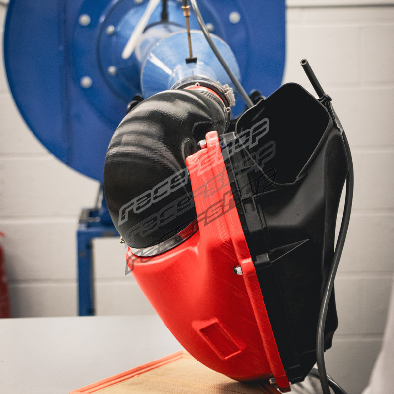 All Pipercross products are designed in-house, utilising the latest 3D-printing, 3D-scanning, CAD, CFD, airflow testing and performance testing product development technologies. Multiple stages of testing were conducted within Pipercross’ engineering department, to gauge the effectiveness and shortcomings of the OEM system, while confirming the increased performance of various iterations of the Pipercross intake. Bench airflow testing was conducted on the full OEM intake system and multiple Pipercross prototype intake design iterations, using Pipercross’ in-house flow test apparatus inside a controlled environment. Performance testing of the OEM and final Pipercross intake design was completed at a third party, independent, environmentally regulated dynamometer cell to ensure unbiased, final performance gain data was captured.