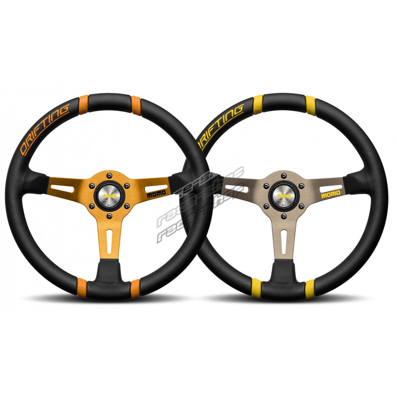 Come il suo gemello, il Drifting offre le stesse caratteristiche prestazionali del Drifting arancione con dettagli gialli a contrasto. Simile per struttura e design, questo volante presenta inserti in pelle per indicare il posizionamento del volante. Il raggio destro presenta il logo MOMO con la scritta "Drifting" ricamata sull'impugnatura.Usati