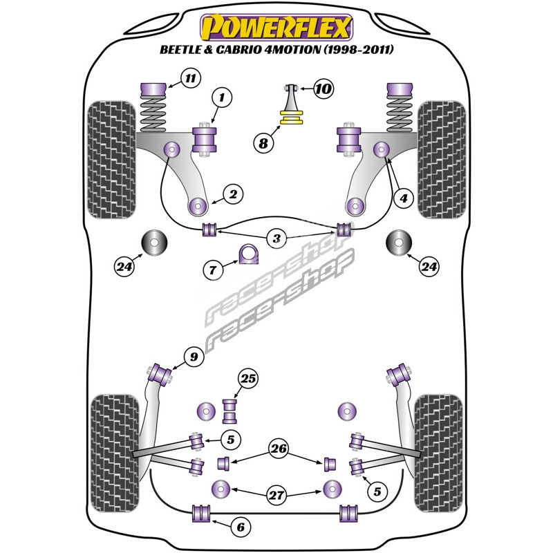 Powerflex Front Wishbone Front Bush 30mm Volkswagen Beetle & Cabrio 4Motion (1998-2011)