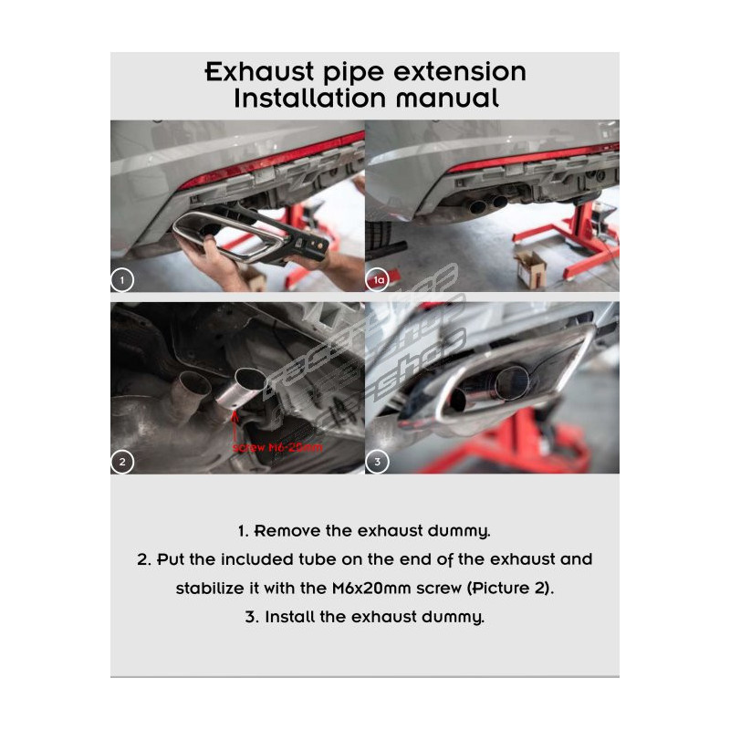 To avoid overheating and possible damage to the diffuser, we recommend that you consider fitting an exhaust gasket before fitting to prevent hot gases from evaporating and thus damaging/melting the plastic part above the exhaust end of the diffuser. Unfortunately, Maxton Design will not accept a product claim if the extension has not been fitted before the exhaust tip.