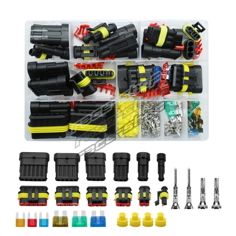 Táto súprava obsahuje 216 kusov vodotesných konektorov v rozsahu od 1 do 6 kolíkov. Okrem toho súprava obsahuje štandardné automobilové poistky (2ks z každého 7,5A / 10A / 15A/20A/25A/30A) a automobilové mini nožové poistky (2ks z každého 7,5A / 10A / 15A/20A/25A/30A).Inviare la domanda al proprietario del negozio, in merito a questo prodotto.