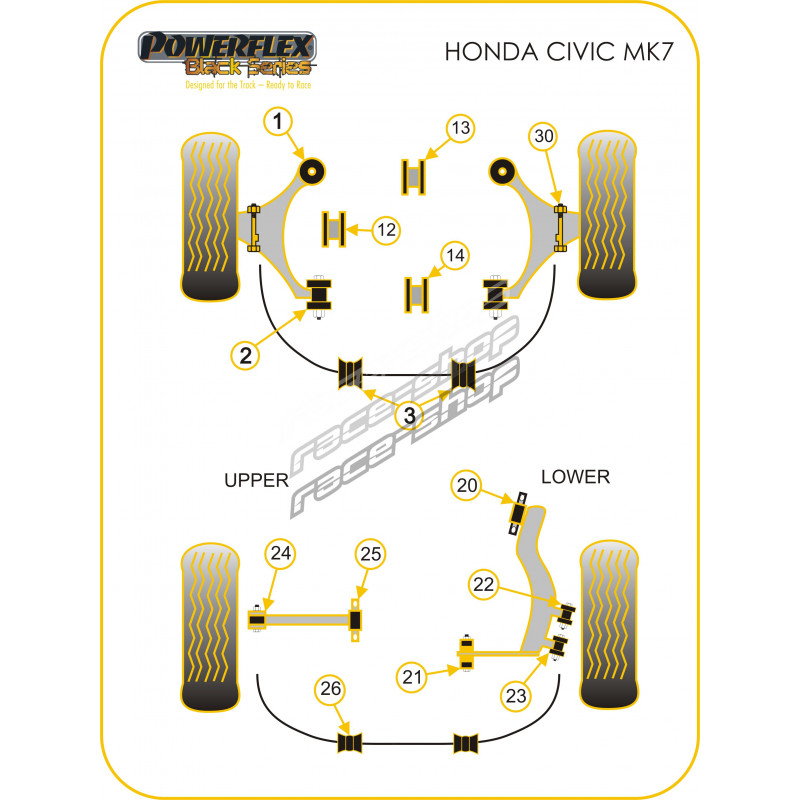 Powerflex Rear Anti Roll Bar Bush 18mm Honda Civic Mk7 inc. Type-R (2001-2005)