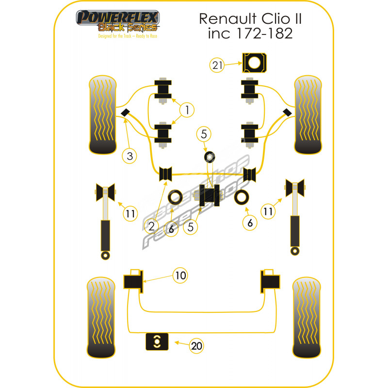 Powerflex Front Lower Wishbone Bush, Camber Adjustable Renault Clio II inc 172 & 182 (1998-2012)