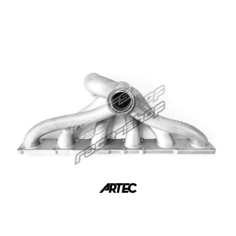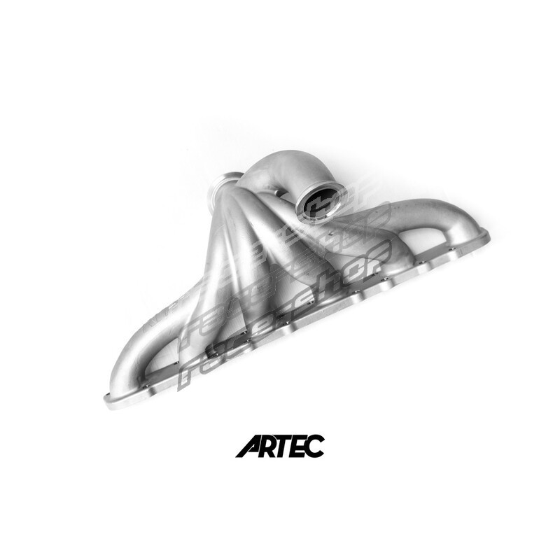 Manufactured by Artec in Australia, this cast stainless steel V-Band Reverse Rotation exhaust manifold is designed to suit Nissan RB20, RB25 and RB26 engines. This reverse rotation design allows for shorter runners and less turbo lag. It is compatible with a wide range of turbochargers using a 50-55 mm V-band inlet, from as small as G25 through to G35-1050 and from Precision 6266 and 6466.