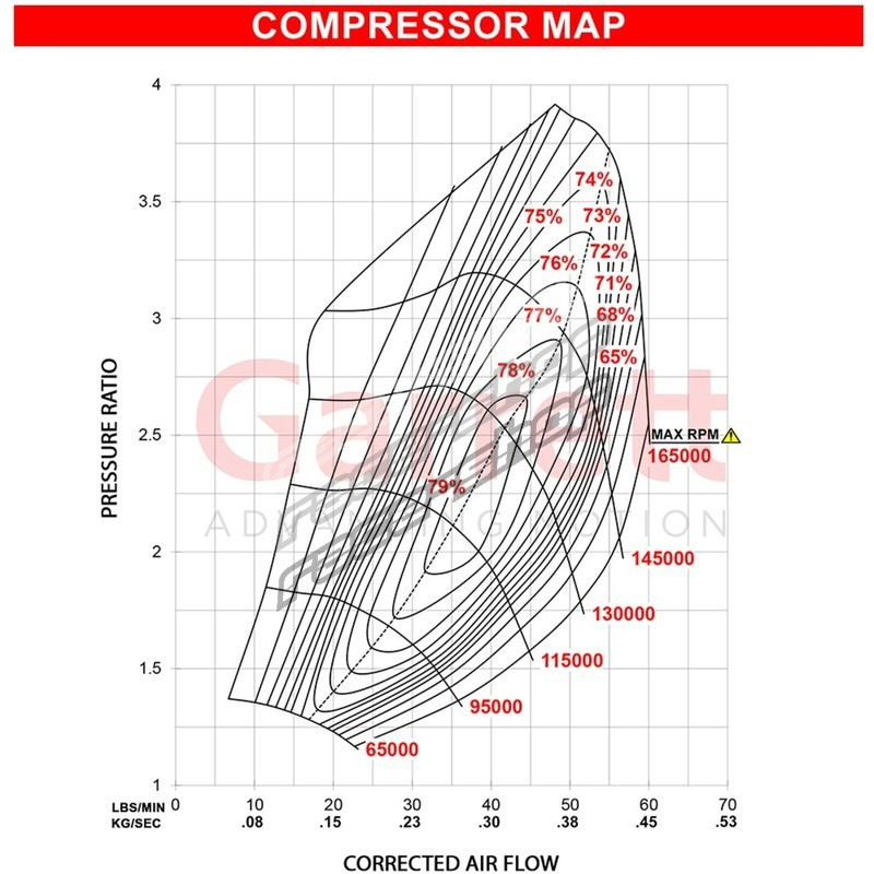 WARNING: Dear customer - G series turbochargers are highly efficient units that don't require a high boost for reaching its limits. Please pay attention that maximum allowable turbocharger speed is 165krpm ( G series ) . The use of this product above max turbocharger speed is at the owner’s risk, and can result in damage and premature failure. To protect the turbocharger from overspeed when operating a speed sensor, part numbers 781328-0004 (single speed sensor that should be connected) or GARRETT G-SMART MODULE ( Module | Harness | Flange Speed Sensor G-Series ) must be fitted and monitored during fine and tune as well as with use of the unit. Missing of the sensors or RPM data will void warranty on product.
