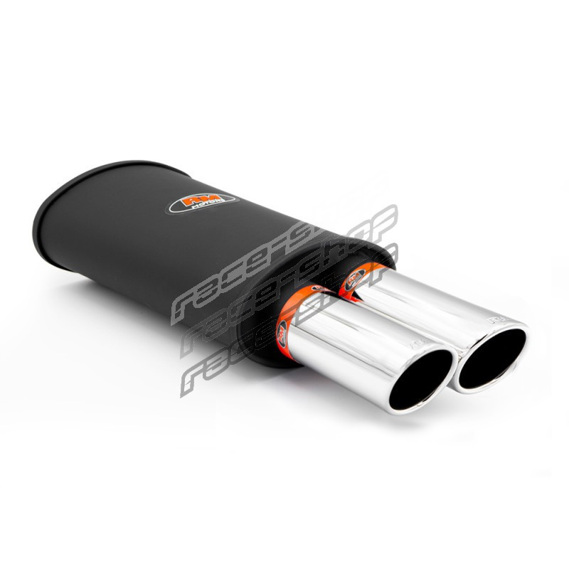 Silenziatore universaleIngresso: 50mmTipo di diametro: 2x76mm Lunghezza della punta: 240mmLunghezza complessiva: 580mm Lunghezza del corpo: 330mm Larghezza/altezza del corpo 210/120mmTipo di materiale: acciaio alluminato