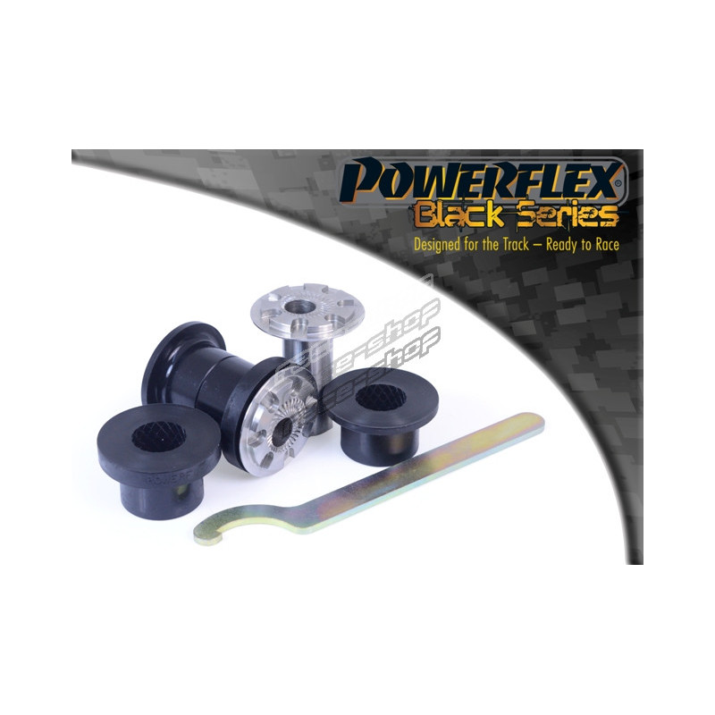 Products Notes: PFF85-201G gives +/- 0.5 degrees of camber adjustment. If fitting on Audi TT MK1, S3 and A3 MK1 and Seat Leon & Cupra MK1 it fits earlier models with a 30mm diameter. It fits both the pressed and cast arms on the Leon & Cupra MK1 and A3 MK1 2WD. Please check original bush size. Later cars may use a larger (nonadjustable) 45mm bush PFF3-501. PFF85-201G bush features a CNC machined Stainless Steel sleeve with an offset bore that can be rotated using our bespoke tooling (supplied), giving +/- 0.5 degrees of on-car camber adjustment. For a non-offset version of this bush please use PFF85-201.Knurled end faces prevent sleeve rotation to retain suspension geometry.PFF85-201GBLK boosts stiffness over the original part by 15%.