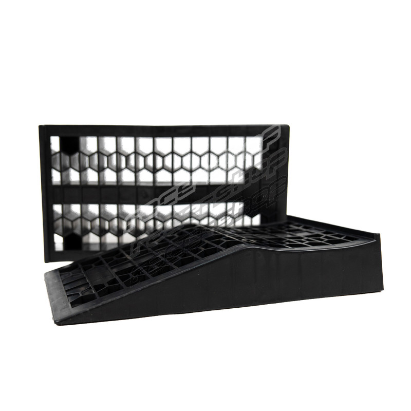 Low rise car ramp made of high-impact plastic shortened design for easy jacking, ideal for racing cars with max tire width 10".