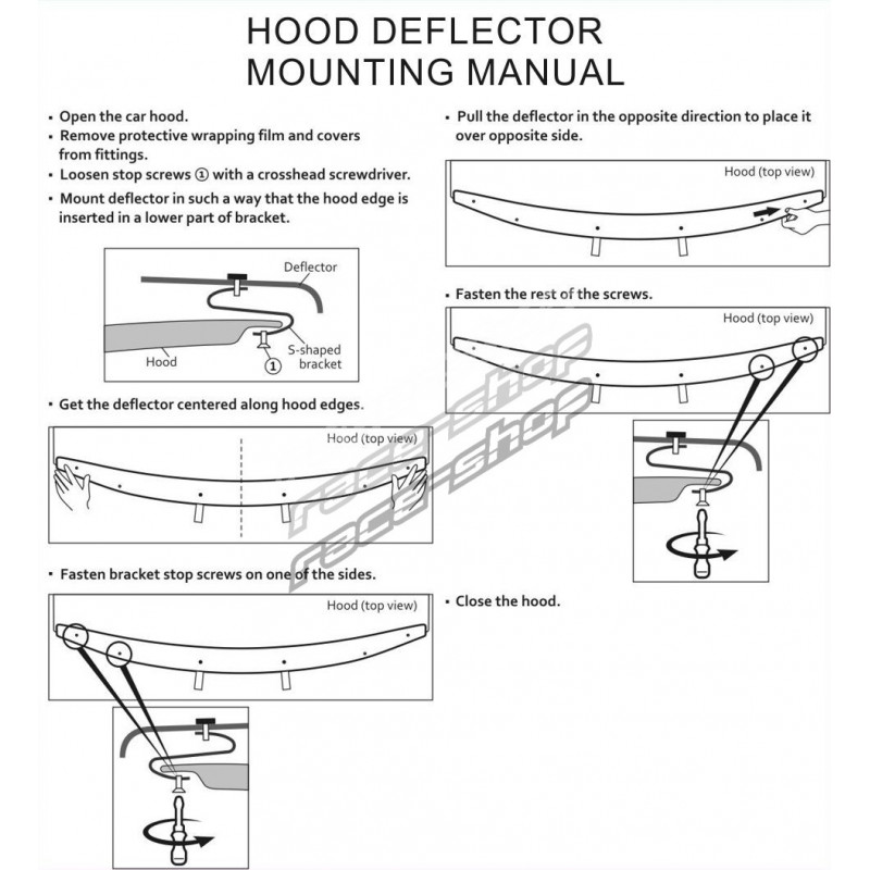 Il deflettore è montato sul bordo anteriore del cofano ed è un ottimo modo per proteggere le parti più vulnerabili della vernice dell'auto dallo sporco e dai danni meccanici causati dalle schegge di pietra.. Questo elegante accessorio regola anche il flusso d'aria per respingere insetti e sporco dal cofano.