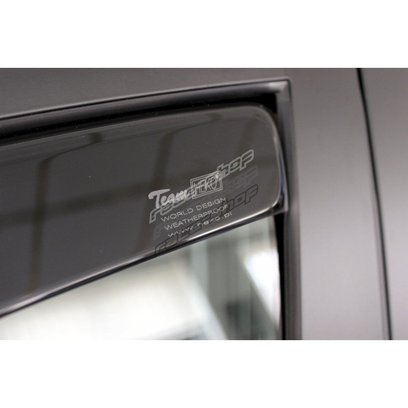 Window deflectors allow the windows to be opened in all weathers, ensuring natural air circulation inside the vehicle and preventing fogging of the windows in rain, fog or snow. This stylish accessory also regulates the airflow and protects the driver from the unpleasant effects of air flowing into the vehicle when the window is open. Wind deflectors (window deflectors) are particularly appreciated in difficult weather conditions (high temperatures, rain, snow) and are also very popular among professional drivers.