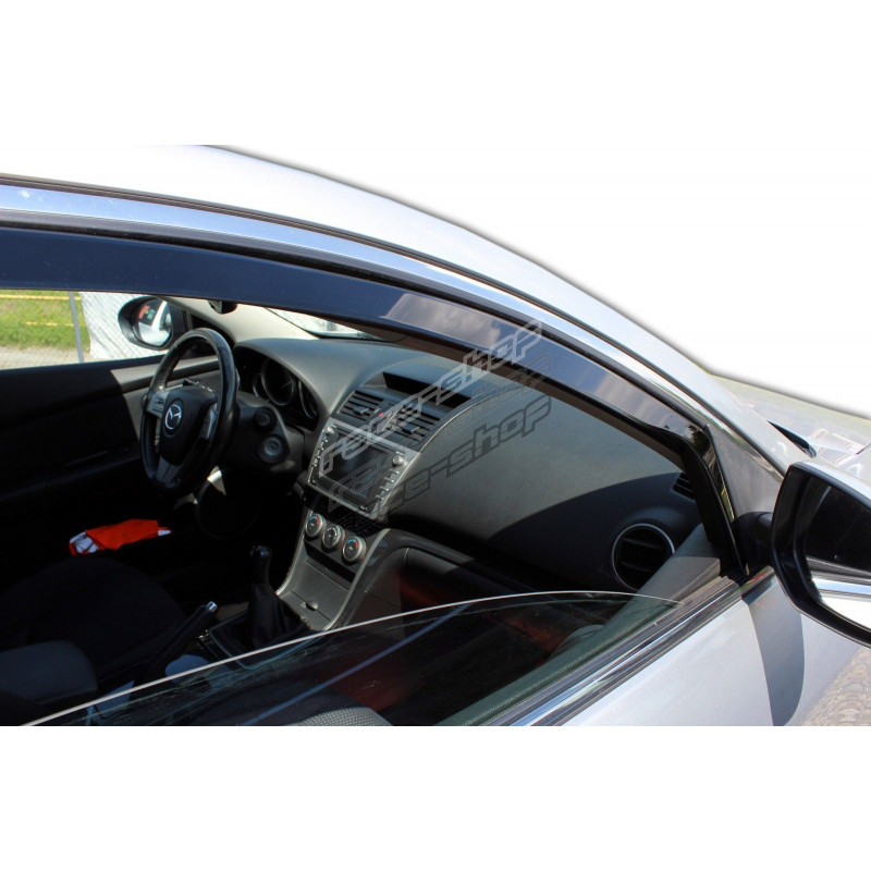 Custom-made window deflectors for MAZDA 6 (GH) 5D 2008-2012 (+OT) COMBI ensure natural air circulation in the vehicle in all weather conditions.