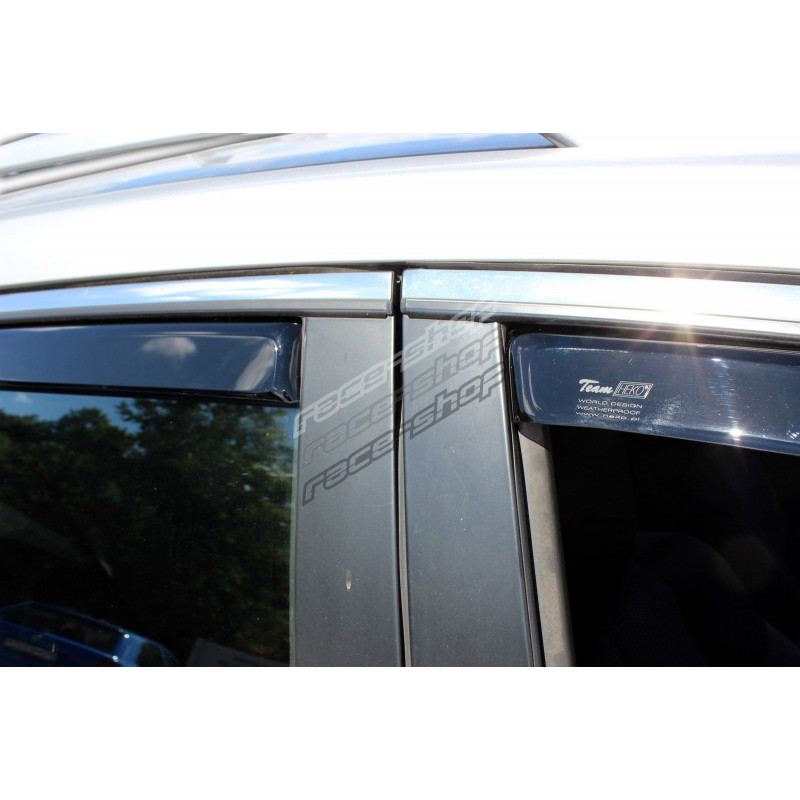 Window deflectors allow the windows to be opened in all weathers, ensuring natural air circulation inside the vehicle and preventing fogging of the windows in rain, fog or snow. This stylish accessory also regulates the airflow and protects the driver from the unpleasant effects of air flowing into the vehicle when the window is open. Wind deflectors (window deflectors) are particularly appreciated in difficult weather conditions (high temperatures, rain, snow) and are also very popular among professional drivers.