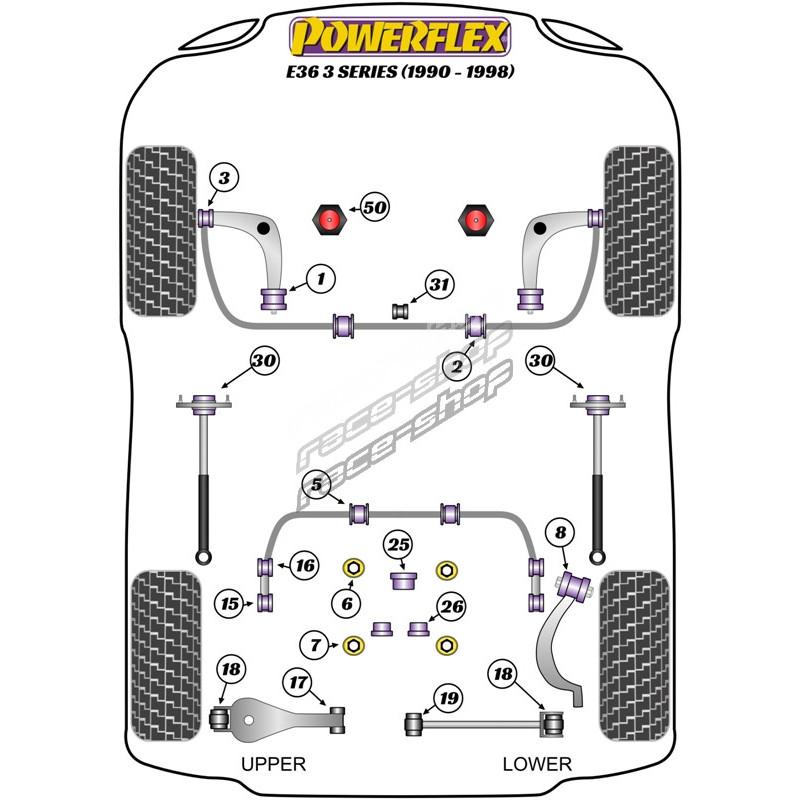 Powerflex Boccola posteriore del telaio posteriore (inserto) BMW 3 Series E36 inc M3 (1990 - 1998)