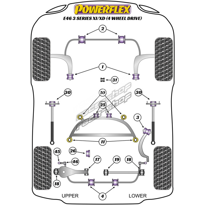 Powerflex Boccola e supporto dello scarico BMW 3 Series E46 (1999 - 2006) Xi/XD (4wd)