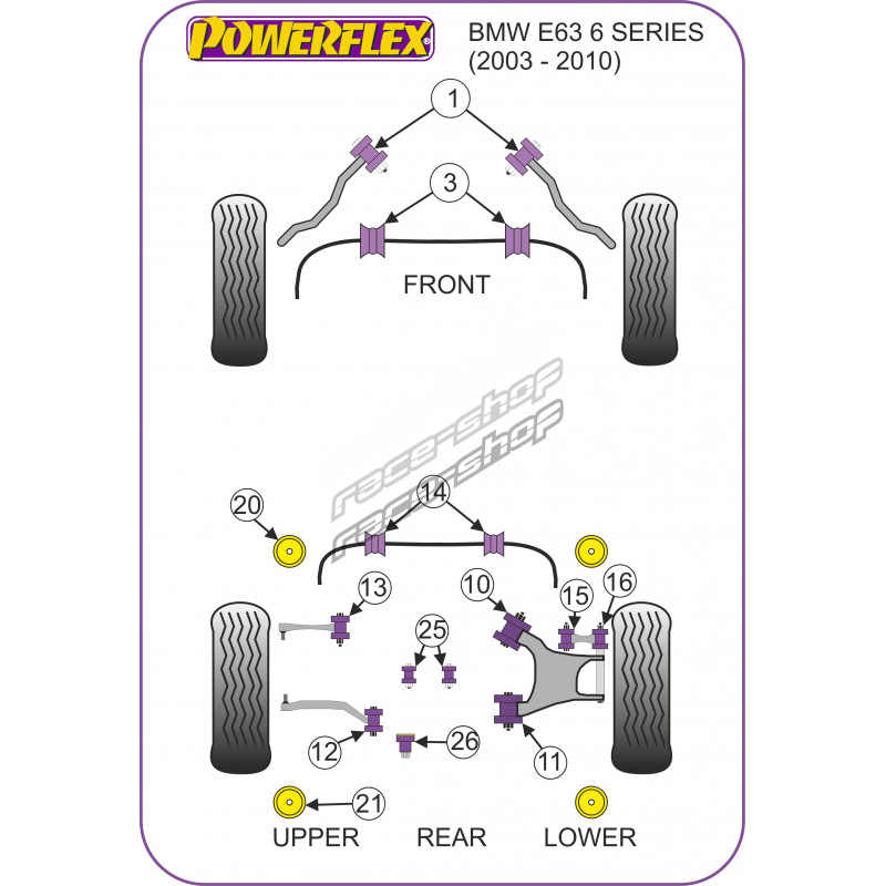 Powerflex Boccola anteriore telaio posteriore BMW E63/E64 6 Series (2003 - 2010)