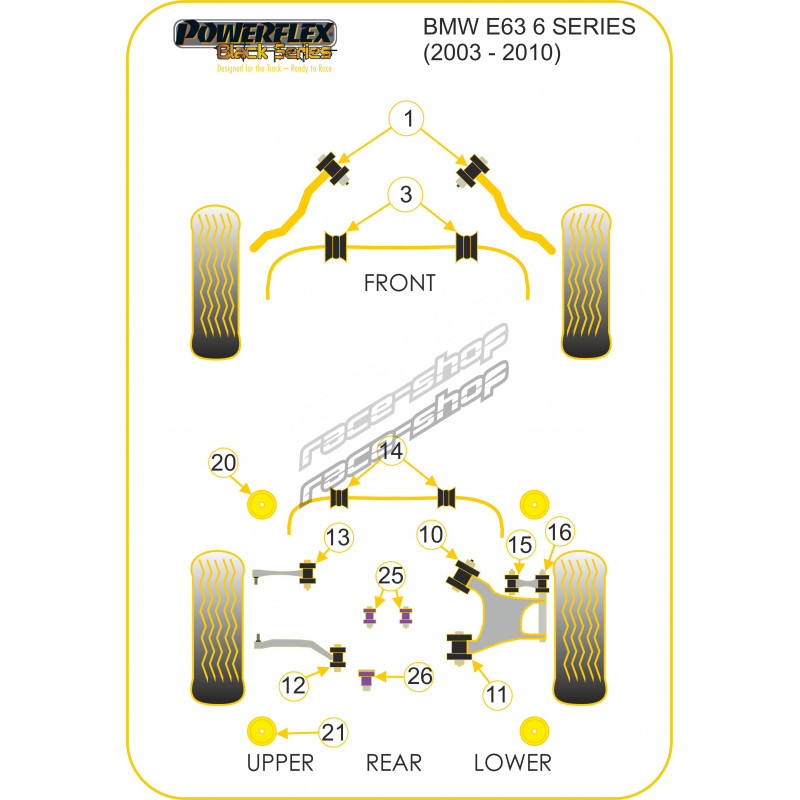 Powerflex Boccola anteriore del telaio posteriore BMW E63/E64 6 Series (2003 - 2010)