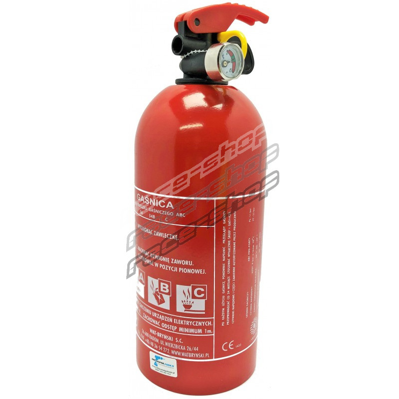 1kg powder fire extinguisher, without manometer. Can be used to smother devices under max voltage of 1000V from the min distance of 1m