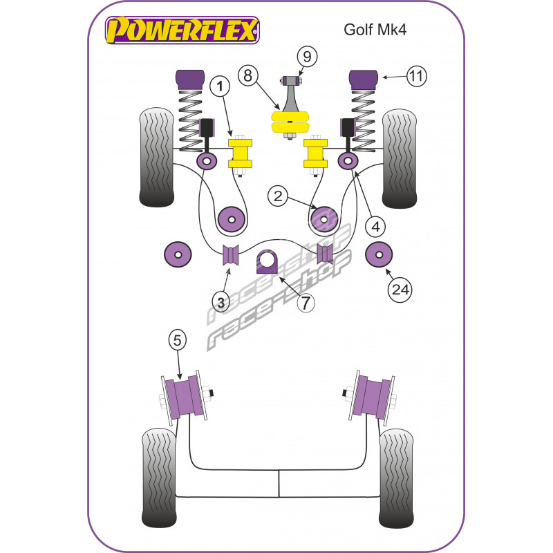 Powerflex Boccola posteriore braccio oscillante anteriore Volkswagen Golf Mk4 2WD Typ 1J