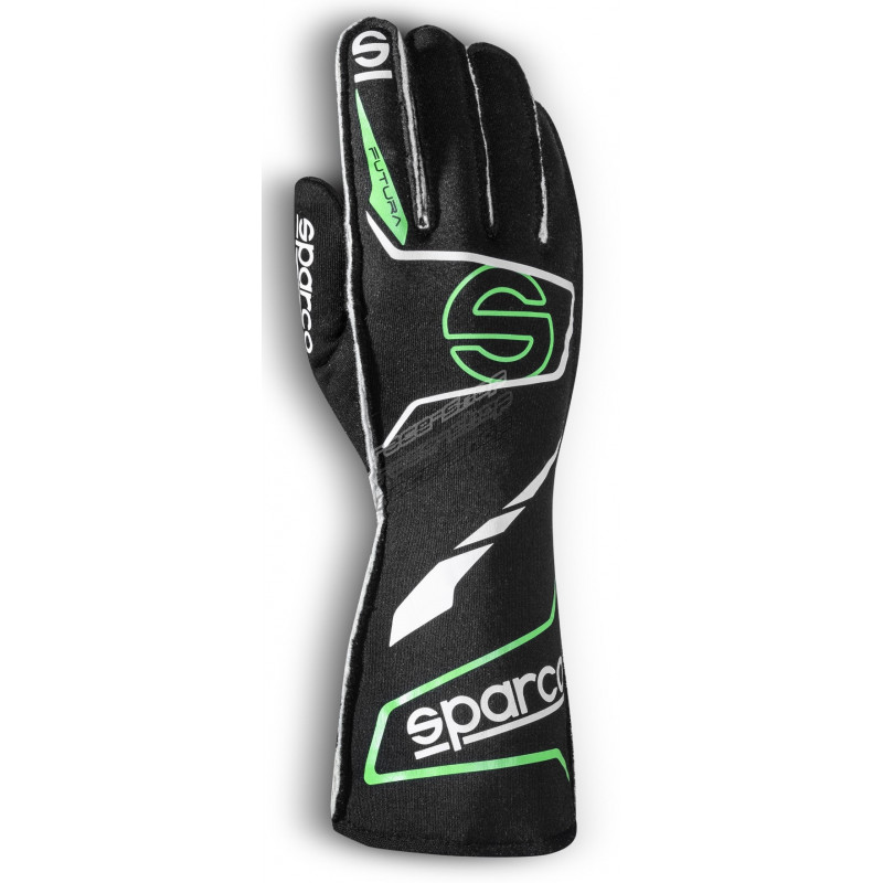 Guanti da gara Sparco FUTURA con FIA (cucitura esterna) nero/verde