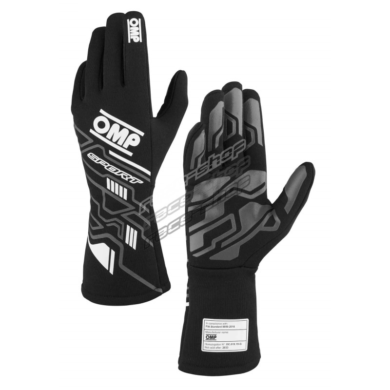 Guanti da gara OMP SPORT my2025 con omologazione FIA, bianco/nero