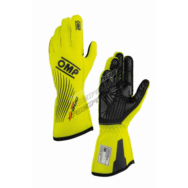 Guanti da gara OMP ONE EVO FX my2026 con FIA (cuciture esterne), giallo fluo