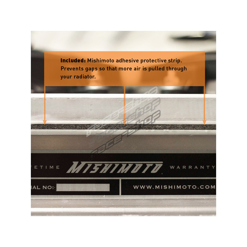 Tutti i copriventola in alluminio Mishimoto includono una striscia protettiva adesiva.