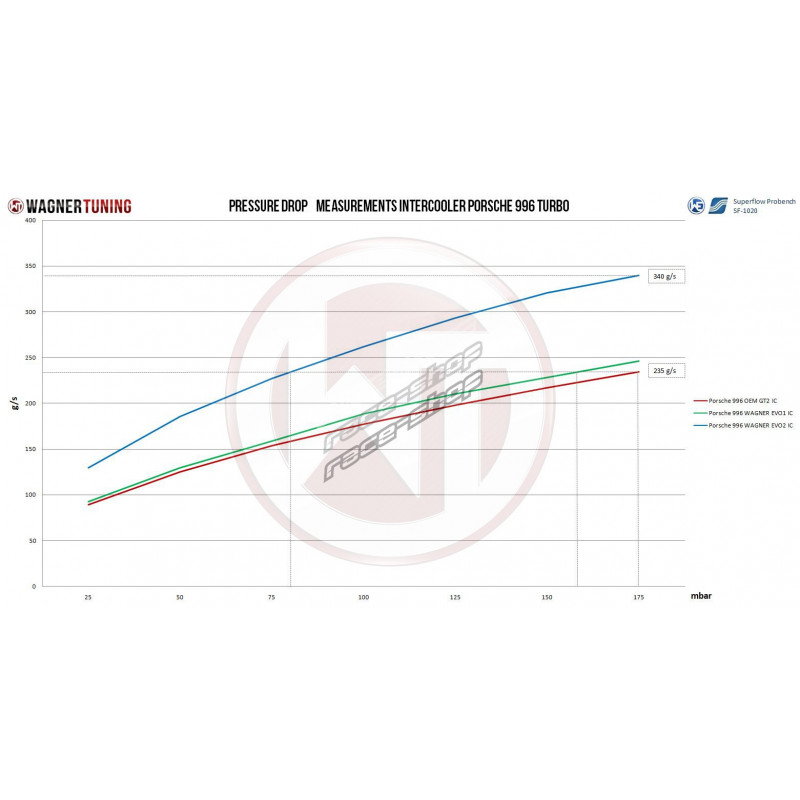 Il Wagner Tuning Porsche 996 911 Turbo (S) Intercooler Kit EVO2 ha dimensione del nucleo (2 x [330mm x 222mm x 145mm] = 21.244 cm³), fornendo il 77% di volume in più rispetto a l'intercooler montato di serie. I nostri ingegneri hanno aumentato l'efficienza dell'intercooler dimensione del nucleo e, oltre ad aver migliorato il design del serbatoio terminale a eliminare le strozzature OEM, con conseguente aumento della portata e delle proprietà di raffreddamento della carica. Questo kit di intercooler utilizza il nostro pluripremiato Wagner Tuning Competition Intercooler Core che è fatto appositamente per questa applicazione. È uno dei nuclei Tube Fin di più alta qualità disponibili sul mercato. L'intercooler ha solo un peso di 2x 6,7 kg. Le analisi di flusso e simulazioni sono state create a per ottimizzare il progetto per il miglior flusso d'aria interno possibile. Il kit intercooler comprende anche un adatto paravento in carbonio a garantire un flusso d'aria ottimale a l'intercooler. Oltre a ulteriori tubi in silicone con una sezione trasversale allargata. Questo kit intercooler è la scelta migliore quando si tratta di a incrementare le prestazioni e le basse temperature di aspirazione. Rivestimento protettivo anticorrosione con perfetto carattere di dissipazione termica del calore. Raffreddamento ottimale con chiaramente più potenza. Il kit è pronto per l'installazione. Il montaggio è semplice, in quanto sostituisce l'intercooler OEM.. Tutti i nostri prodotti sono sottoposti a rigorosi controlli di qualità e sono anche testati per la resistenza alla compressione fino a a 6 bar. Questo kit intercooler è adatto per le corse. 70mm In e uscite