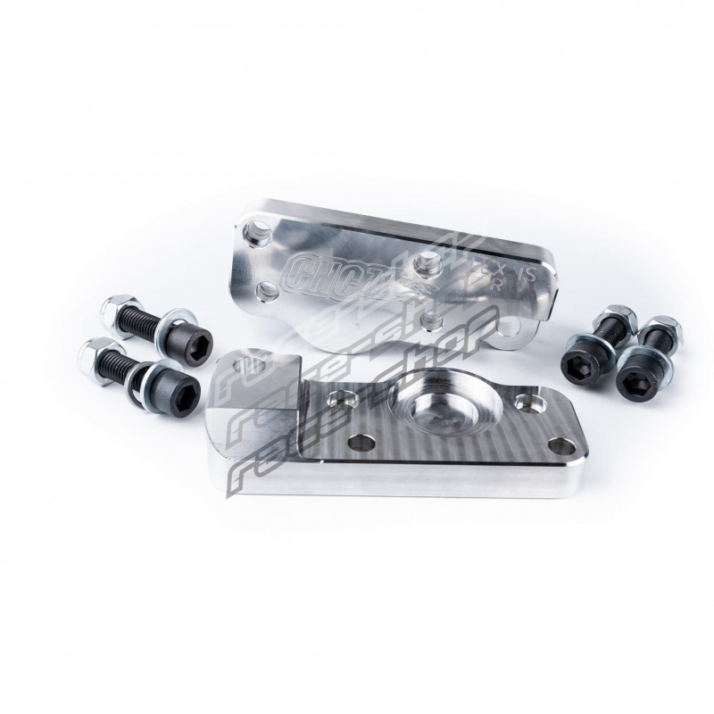 Gli adattatori sono fresati su macchine CNC, il che garantisce una finitura di alta qualità e un adattamento al 100% dell'adattatore al fuso a snodo e al perno. La lega di alluminio utilizzata garantisce una durata superiore a quella della soluzione standard.