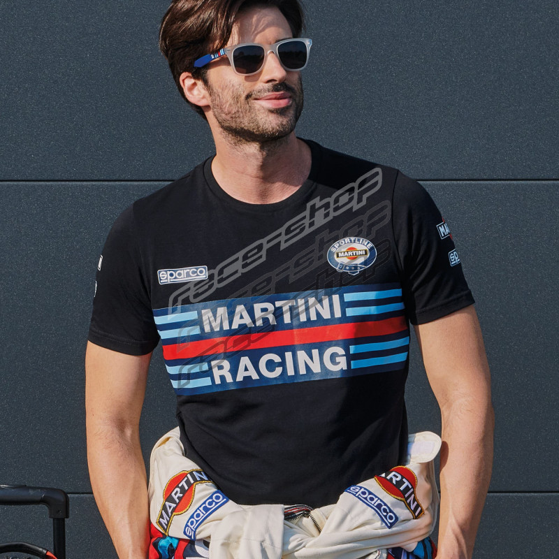 Replica originale della maglietta dell'emblematica tuta Sparco - Martini Racing. Stampato sul davanti e liscio sul retro. Logo SPARCO e MARTINI RACING sul petto.Inviare la domanda al proprietario del negozio, in merito a questo prodotto.