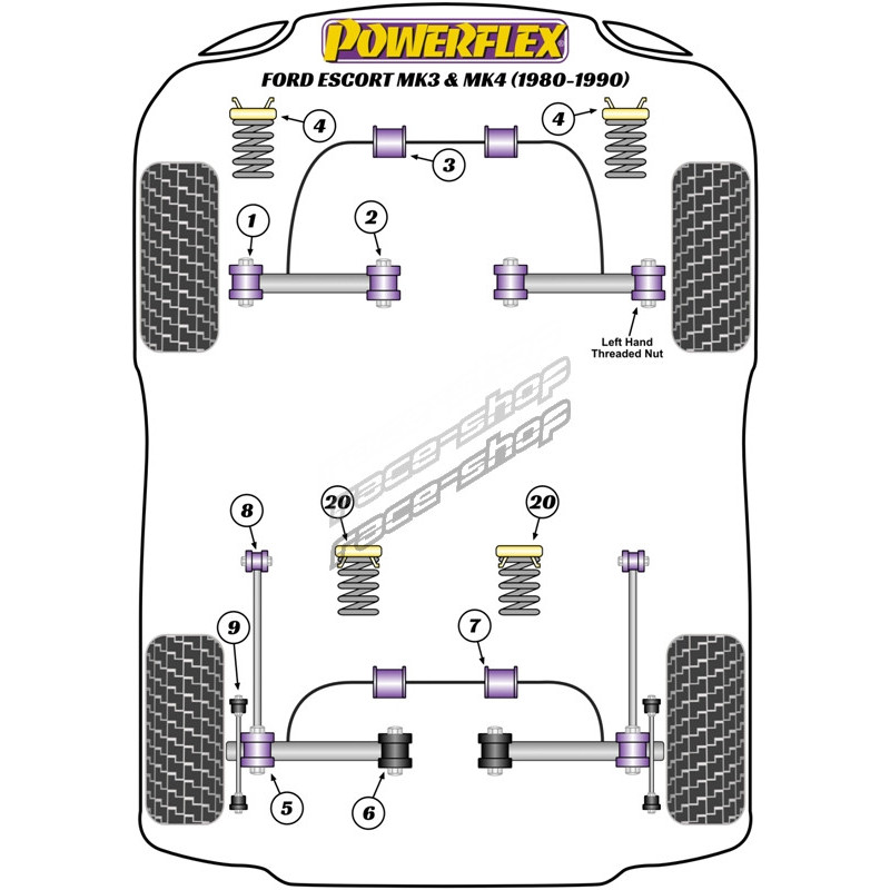 Powerflex Rear Wishbone To Hub Bushes Ford Escort Mk3 & 4, XR3i, Orion