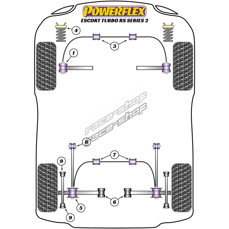 Powerflex Rear Inner Wishbone Bush Ford Escort Models Escort RS Turbo Series 2