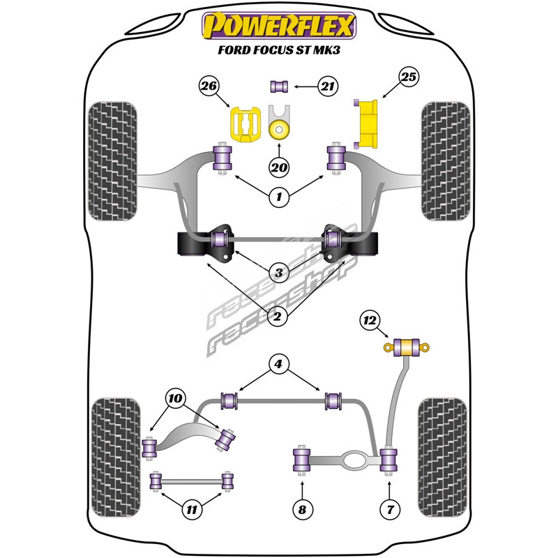 Powerflex Front Wishbone Rear Bush Anti-Lift & Caster Offset Ford Focus Mk3 inc ST and RS (2011 on)