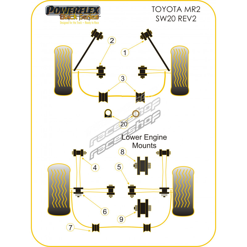 Powerflex Tie Bar To Track Control Arm Bush Toyota MR2 SW20 REV 2 to 5 (1991 - 1999)