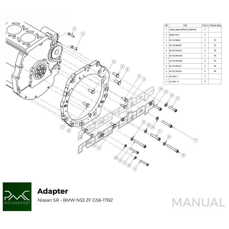 PMC Motorsport Piastra adattatrice (adattatore trasmissione)Nissan SR SR20 - BMW ZF310 / ZF320 / ZF GS5-39DZ / Getrag420G / ZF GS6-37DZ / ZF GS6-53DZ HGK HGU JGA HGD HGA JGL / GS6-53BZ / Getrag DCT DKG GS7D36SG inline-six / ZF 8HP70Inviare la domanda al proprietario del negozio, in merito a questo prodotto.