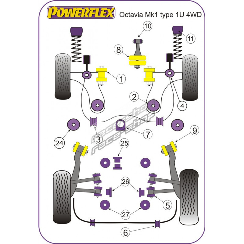 Powerflex Front Engine Mount Dog Bone Small Bush Skoda Octavia Mk1 Typ 1U 4WD (1996-2004)