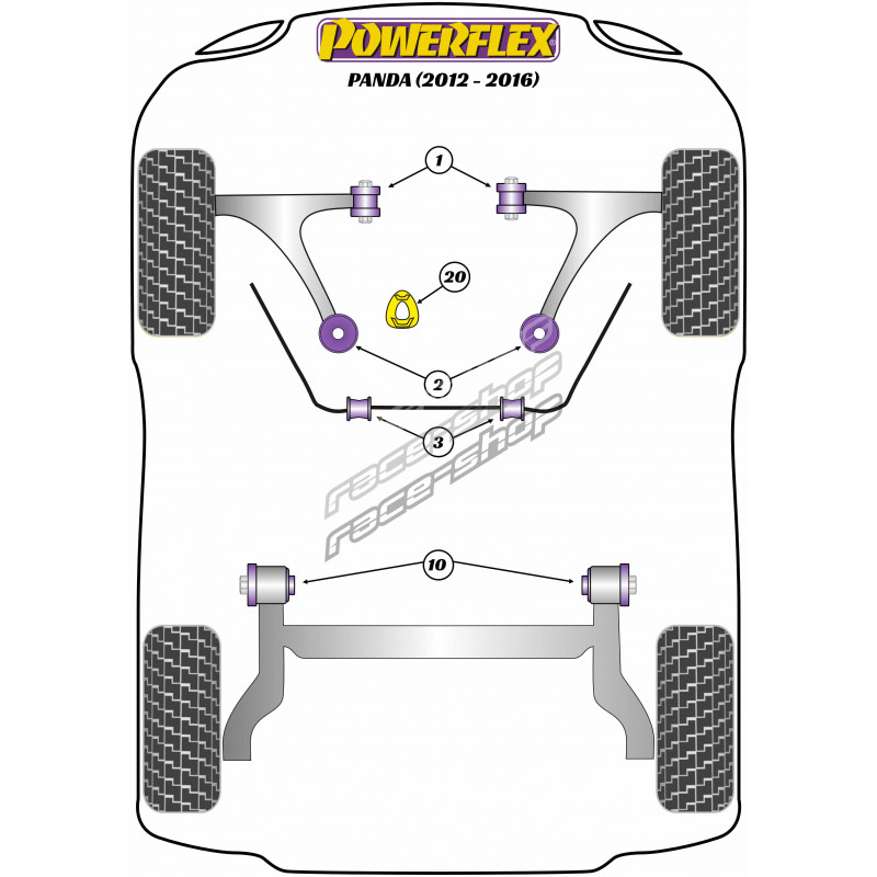 Powerflex Front Wishbone Rear Bush Fiat Panda Gen 3 312/319 (2012 - 2016)