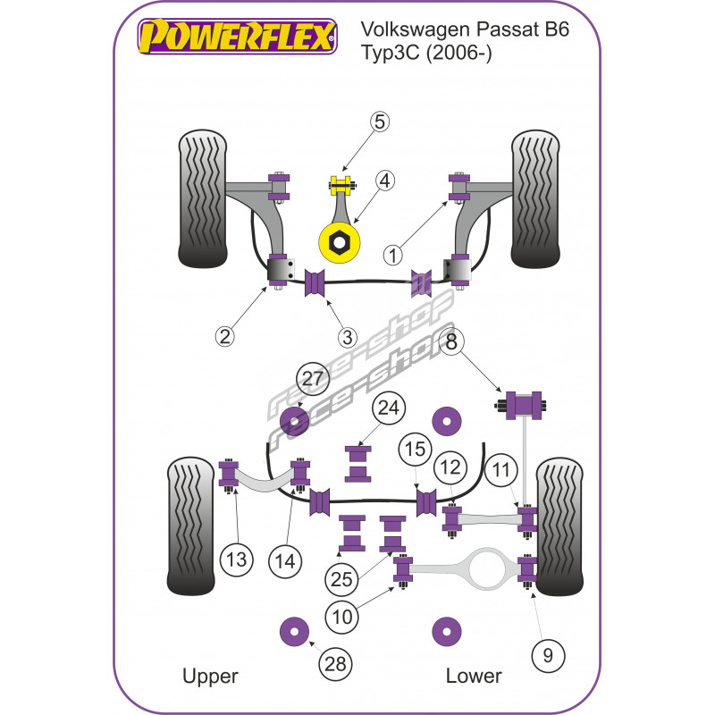 Powerflex Boccola barra stabilizzatrice posteriore 19.6mm Volkswagen Passat B6 & B7 Typ3C (2006-2012)