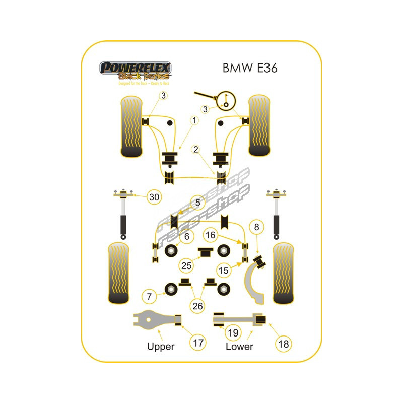 Powerflex Supporto di montaggio superiore posteriore dell`ammortizzatore 10mm BMW E36 3 Series (1990 - 1998)