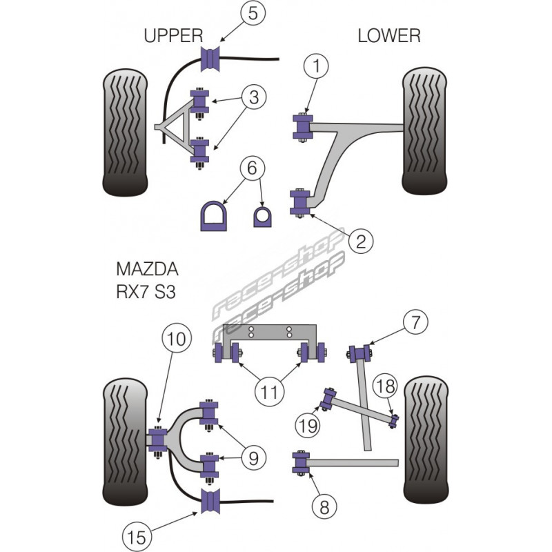 Powerflex Boccola barra stabilizzatrice posteriore 16mm Mazda RX-7 Generation 3 & 4 (1992-2002)