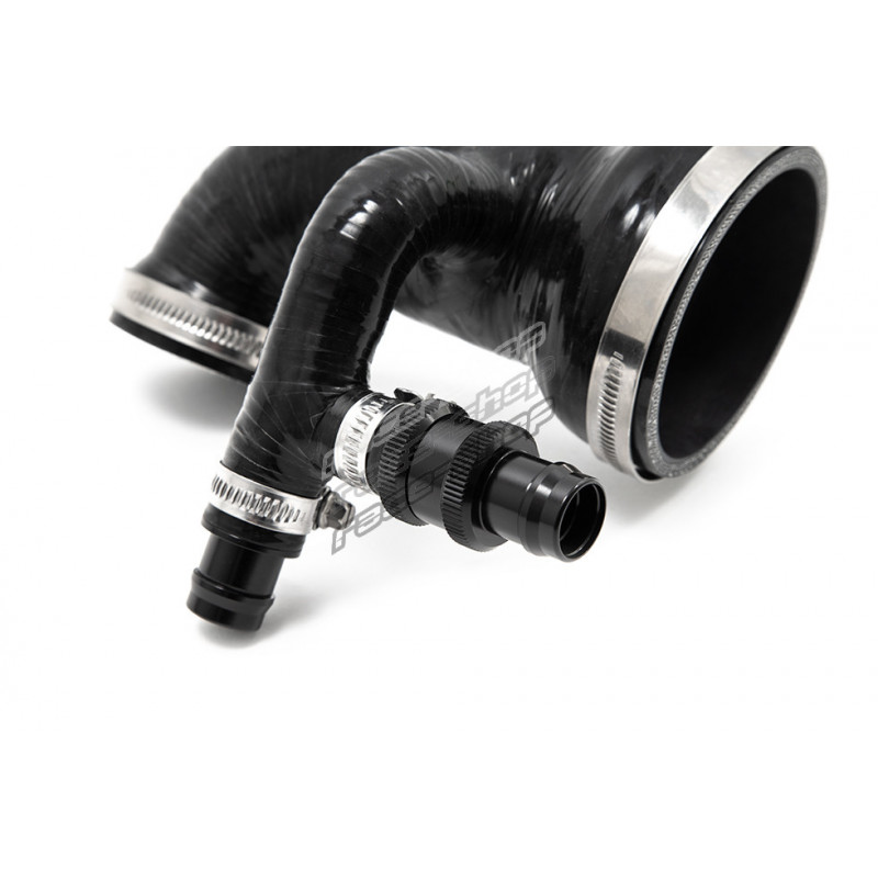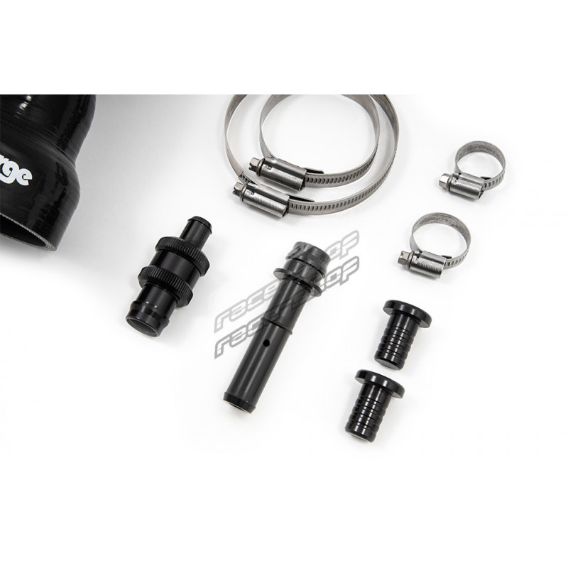 Il turbocompressore OEM in plastica include una camera di rumore cava e nervata, progettata per disturbare il flusso d'aria e ridurre il rumore di induzione. Questo componente OEM ha un effetto negativo sulle prestazioni del motore, soprattutto quando è messo a punto. Per ottenere i massimi risultati possibili, la camera è stata rimossa, consentendo un aumento significativo del volume e del flusso d'aria. Il design FORGE presenta anche un'area interna a gradini in corrispondenza del punto in cui è posizionato e collegato all'alloggiamento del turbocompressore, per garantire che la transizione dal condotto di aspirazione al turbo sia la più fluida possibile.