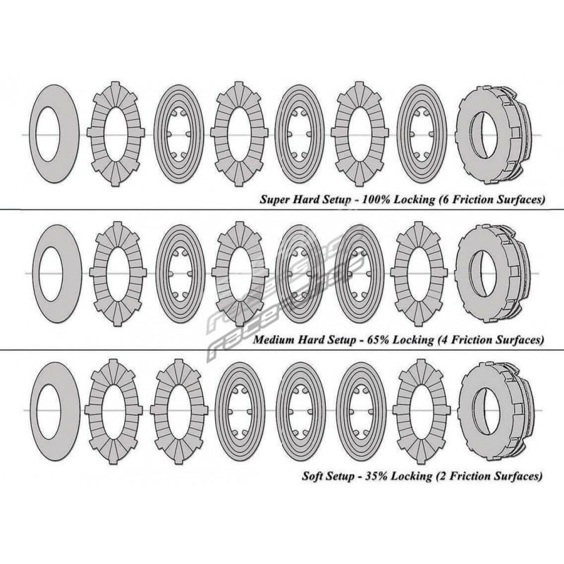 The 1.5 way is similar to 2 way LSD but does provide less lock on deceleration. With optimum performance during acceleration and also with soft lock when slowing down, it is best for classic road racing.