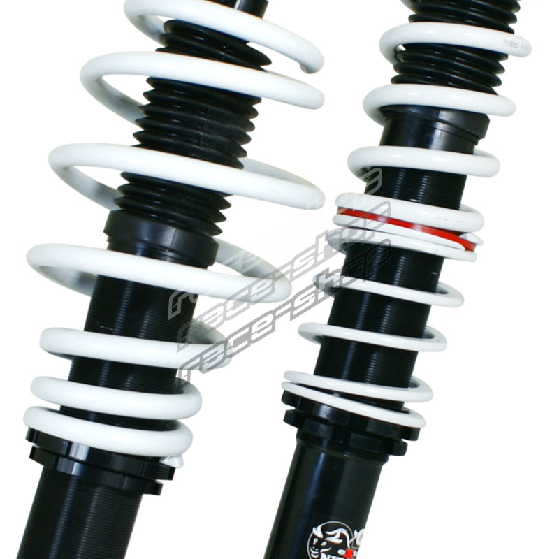 Abbassamento massimo - massima flessibilità !Kit coilover regolabili in altezza e durezza con un intervallo di regolazione sulla parte anteriore e l'asse posteriore tra 40 - 55 mm per una perfetta tenuta di strada in ogni situazione. Sempre una bella sensazione con l'esclusiva vite di controllo della durezza. Alta qualità!