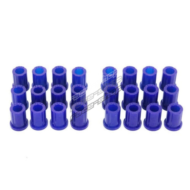 These bushings are often overlooked when upgrading the suspension of a 4WD.Leaf spring bushings stabilise the movement of the rear axle, inferior bushes in this area will cause the solid rear axle to move and impart rear end passive steer to the vehicle.It also causes the vehicle to ""wander""all over the road and be unstable under heavy braking.This can be especially noticeable carrying a load or towing a boat or caravan.The OE rubber style bushes are designed to work at standard height with standard tyres and with standard loads.By fitting SuperPro Bushings and upgrading to Greaseable Shackles the rear end of your 4WD will handle just about anything you can throw at it!