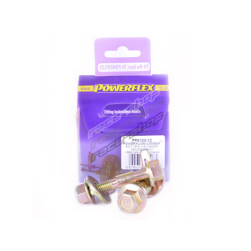 Products Notes: Kit contains 2 camber bolts, tab washers and nuts. Camber adjusting bolt to replace the original 12mm bolt. This fits 2 bolt hub to strut models only. Check bolt diameter. Why not add our Magnetic Camber Gauge to your tool kit so that you can make pit garage adjustments to your suspension using PowerAlign Camber Bolts....Click HERE for more information