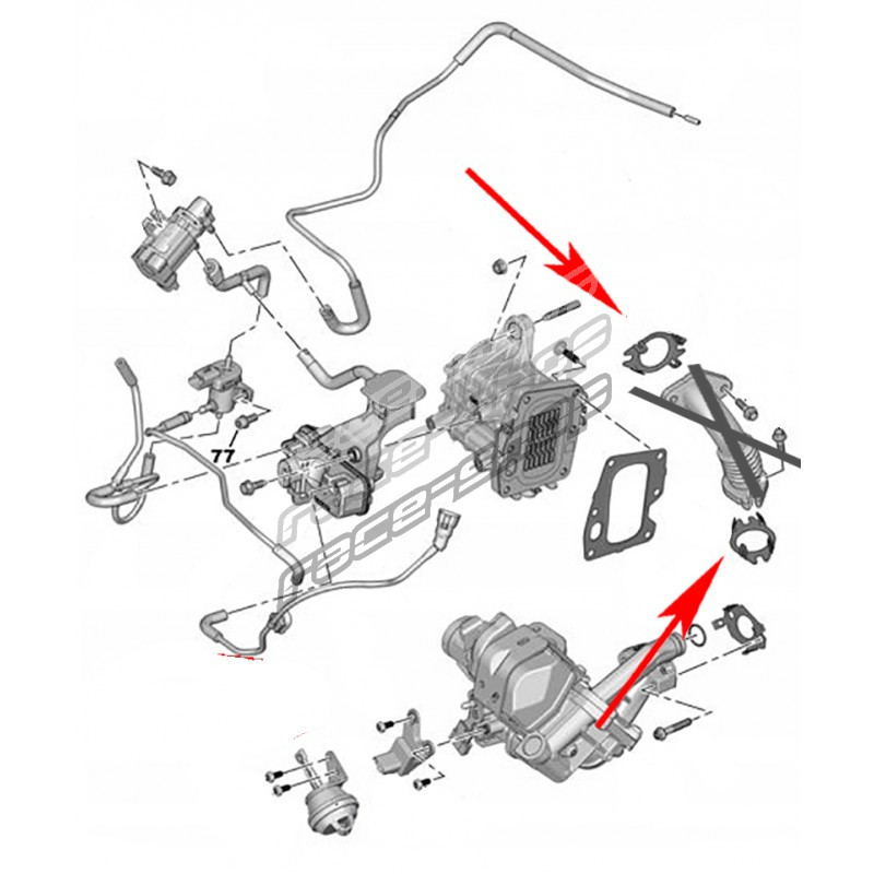 La valvola EGR riduce il contenuto inquinante dei gas di scarico consentendo di determinare la quantità di gas combusti nell'aspirazione. Tuttavia, il gasolio è molto grasso e l'EGR è spesso bloccato, riducendo di conseguenza il passaggio dell'intero tratto di aspirazione del motore. Si verifica una diminuzione delle prestazioni e un aumento del fumo.